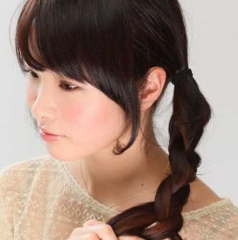 2、扎好马尾后,就开始编织简单的三股发辫并扎好。