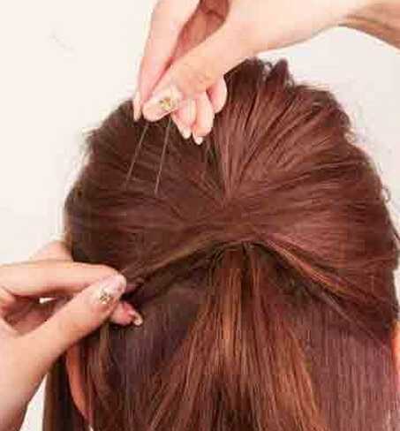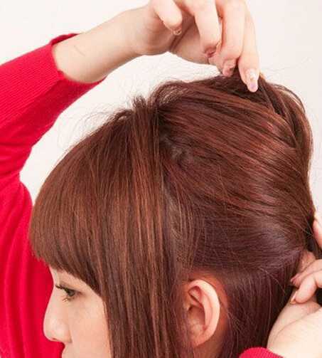 4、然后把两侧预留出来的头发固定在马尾上方,并使用夹子固定,这样就形成一个公主头造型了。