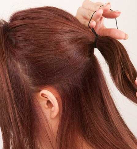 2、再把后面的头发分为上下部分,然后把上部分头发扎马尾。