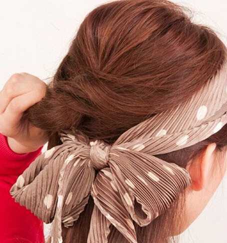 5、利用发带佩戴在公主头的下方打一个蝴蝶结,如图。
