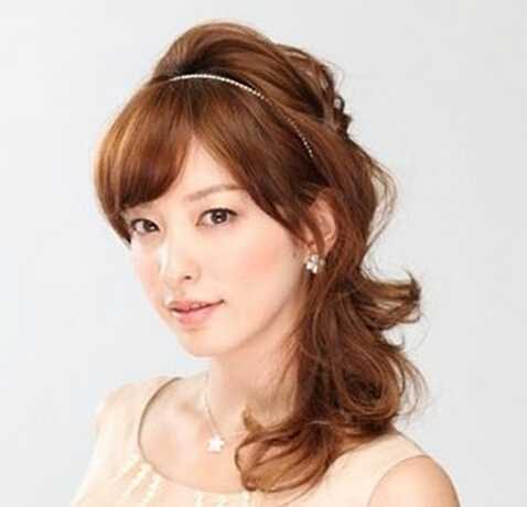 5、最后佩戴上一款精致的发箍,这样公主头的造型就完美凸显啦。