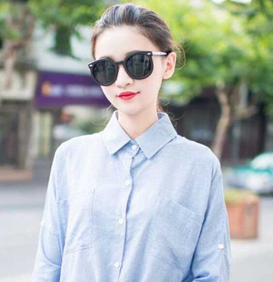 发型点评:很有时尚范儿韩式的露额发型,简单清爽的无刘海扎发搭配亮眼红唇帅气,大墨镜十分吸睛,甜美时尚的韩流范儿街拍造型。