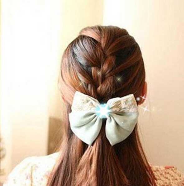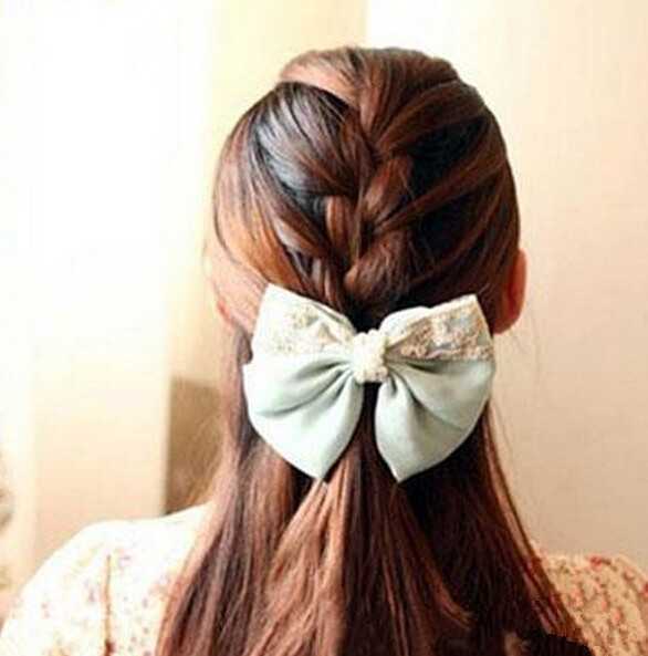 步骤五:最后把蕾丝蝴蝶结头饰品夹上去,优雅淑女范就出来啦!