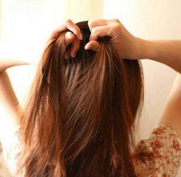 步骤三:再把两侧边的头发整理好后就拉扯到中间部分来。
