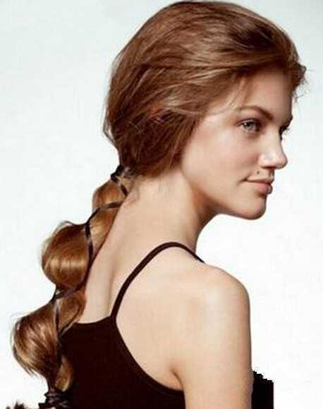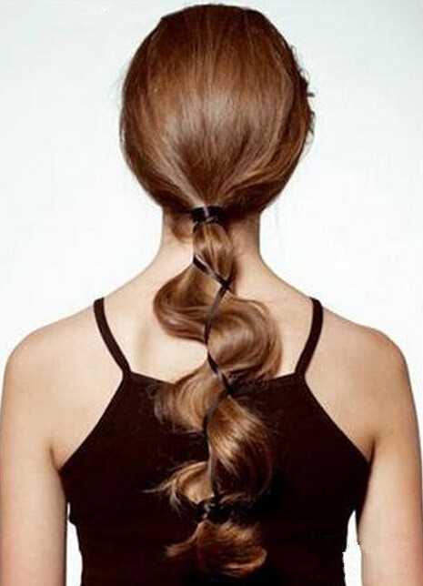 步骤四:再把头发从绸带中拉扯松,这样感觉比较丰盈;