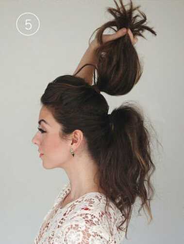 步骤4、再用橡皮筋把上层头发扎好,扎的时候注意一下,不要扎得太紧实,否则整个发型的蓬松感就少了一大半;