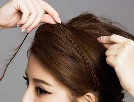 步骤五:最后再将两条小辫子绕道头发上固定好,轻松搞定出优雅的马尾辫造型。