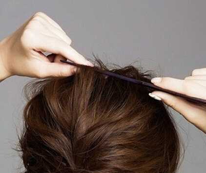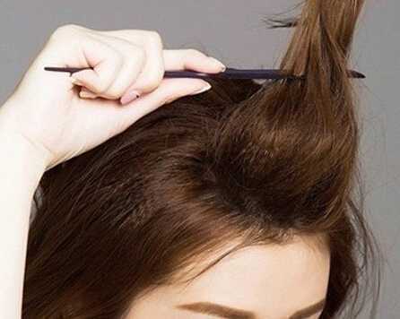 步骤四:用细梳子末端,再将头顶上的头发抽出来,让造型感更强更时尚一些。