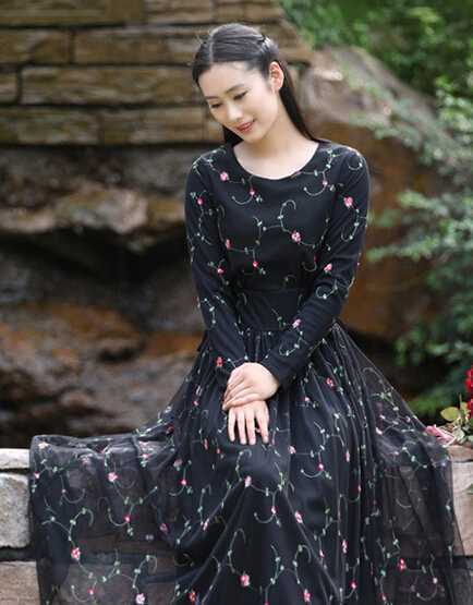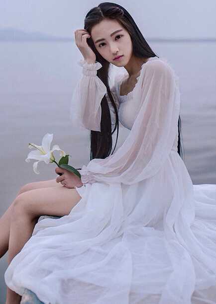 从侧面看也非常美,侧脸和发型搭配,还有点复古味道,犹如一幅画般。