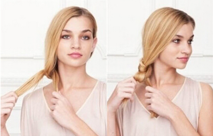 扎发教程step02》》》》》然后,就像平时绳子打结一样,将分好的两大束秀发打成一个结,打完一个后再接着打第二个结。