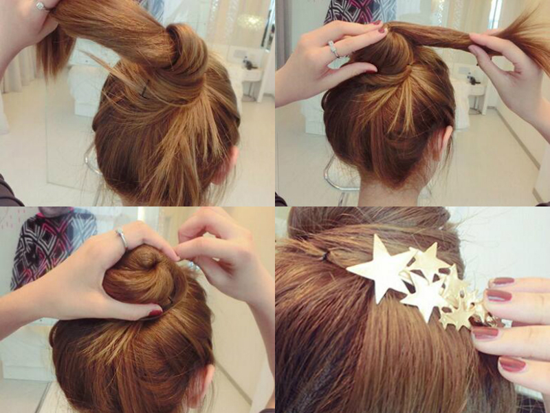 接着,我们按照上述方法,将剩下的头发按照逆时针方向转动,再用U型夹固定好。最后,爱美的MM可以使用你喜欢的发饰进行装饰,会让你的发型看上去更加美美哒。