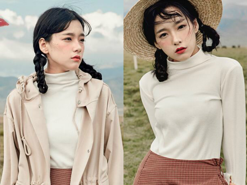 想要尝试创新点的扎发发型,不如试试把头发扎成两根辫子,然后把辫子的发尾挽起来与发根绑在一起,形成一束重叠的发辫,如此扎法就变得特别多了,虽然刘海被秋风吹得有些散乱,却使女生身上流露出一种迷离感,有点捉摸不透的感觉呢!