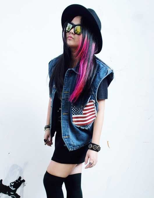 玫红色的挑染,显得个性时尚,两颊稍显蓬松的直发将脸蛋显得更小了,