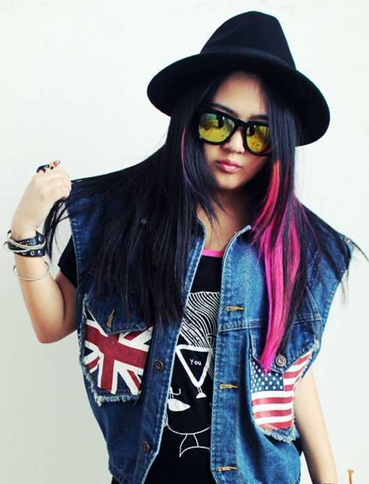 个性时尚又修脸型的中分女生直发,发梢处的玫红超级吸引眼球哦!