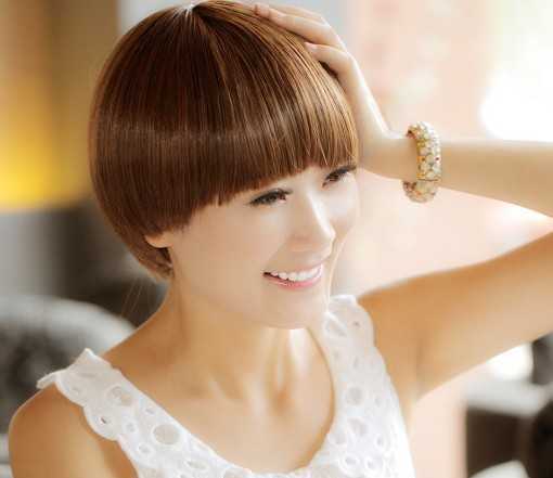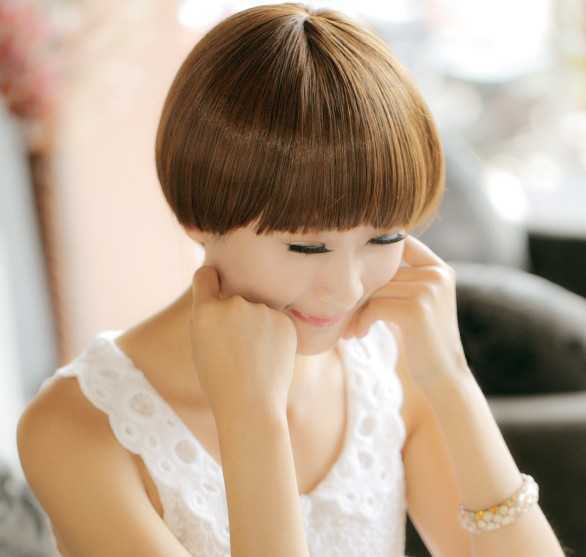 好可爱的2013齐刘海BOBO头短发哦!前面的齐刘海给人最甜美一面,两颊短发尾,展现出清爽感,浅棕发色更是时尚哟!