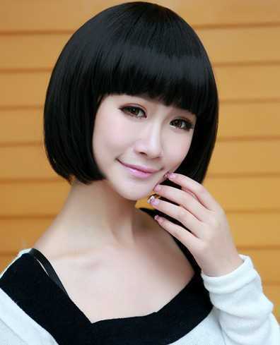 齐刘海自然黑波波头短发一