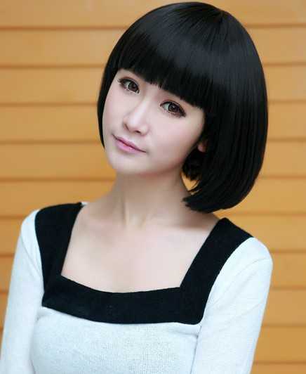 一头自然黑发色衬托出亮白肌肤,前面是剪齐的刘海,甜美可爱,两颊内扣发尾,起到很好的修脸效果,这么棒的一款波波头短发你喜欢吗?
