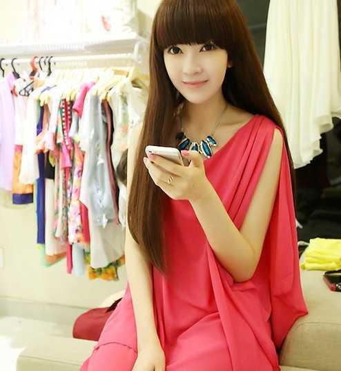 超长顺滑而落的长直发发型,带出了温婉乖巧女生的最美一面,厚感的齐刘海搭配时尚连衣裙,变身名媛淑女风。