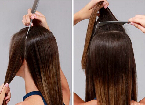 【马尾扎发教程step01】首先,把全部的秀发梳理一遍,梳理整齐之后,利用尖尾梳将头发分成三份,左右两份平等,中间的则大份些。