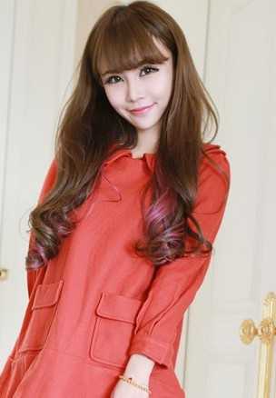 前面齐刘海的打造看上去真的很甜美哦!两颊的卷卷变色发尾超好看的!好唯美哦!亚麻色的发色也是当前流行的发色之一哦!