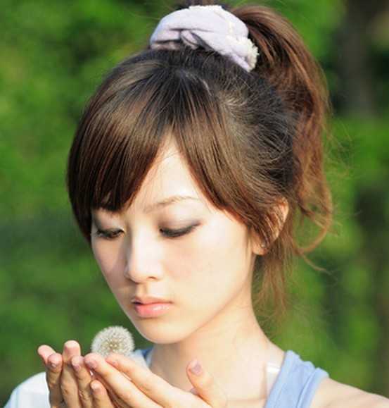 十分简约的2013年中长发扎发发型,高耸扎起是马尾设计早已是女生清爽甜美的标志了,偏分的刘海打造迷人的脸蛋,浅棕色染发为发型带出一丝亮点,时尚又大方哦!