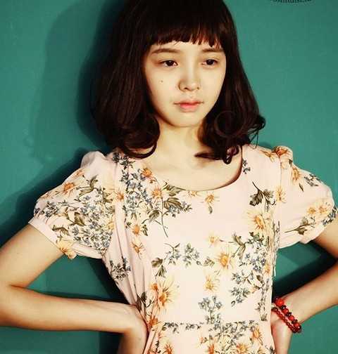 内扣式的中长发发型,包裹出一张精致的小脸蛋,修剪为不规则的齐刘海,萌感可爱极了,搭配小碎花裙子,又是恬静淑女范!