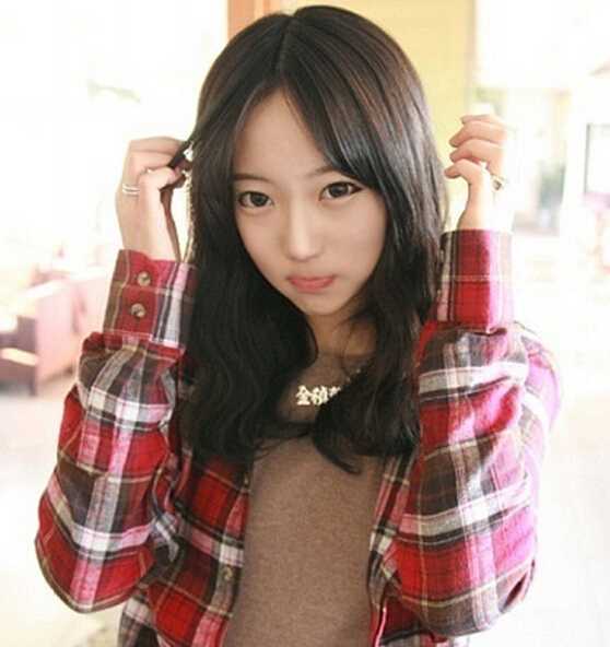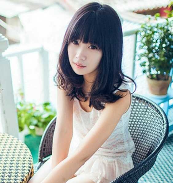 发型点评:齐肩中长发,刚好到肩部的头自然蓬松,整齐的齐肩发尾和三七分及肩长刘海完美修饰圆脸,很好达到瘦脸效果,微微低头,头发挽在耳际内使女孩显得特别的清新可爱。