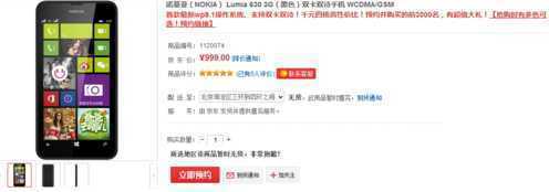 诺基亚Lumia 630在京东开启预售,价格为999元,有兴趣入手的可别错过咯。