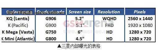 从文件中可以看出三星新款手机的屏幕配置,最受关注的当然就是 2K屏幕的新款旗舰机了,这款型号为G906的新机,屏幕将会为5.2英寸,但依然不能确定这款2K级别的新机就是传闻中的Galaxy S5 Prime。