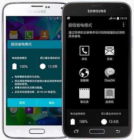 三星GALAXY S5拥有超级省电模式,可以增长电池使用时间,能够将屏幕颜色改为黑白,关闭不必要的应用,降低电池的消耗,超强续航,电力持久。