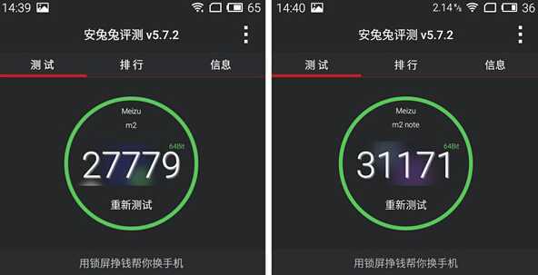 通过跑分测试对比可以看出,魅蓝2安兔兔跑分26916分,而魅蓝Note2安兔兔跑分31638分,魅蓝note2的要强一些,但两者的表现都不错。