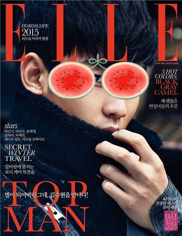 近日,“男神”金秀贤携手某时尚杂志拍摄了2015年1月号写真封面,写真中,金秀贤一如既往的深邃眼神令人沉醉,而靠在金秀贤肩膀上的金发女模特更是令一众女粉丝羡慕不已。