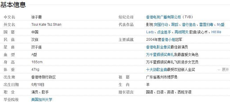 2004年,徐子珊参选“香港小姐”比赛获得冠军后签约TVB而出道;