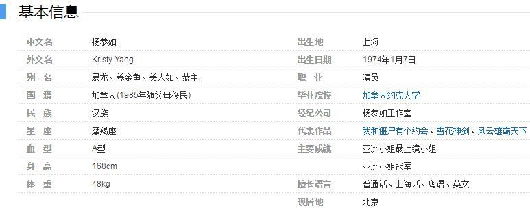 外文名:Kristy Yang