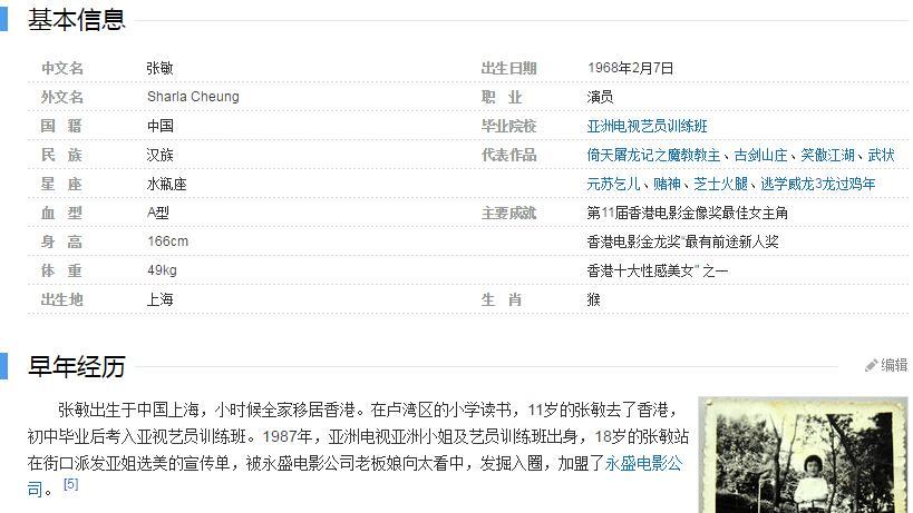 1994年,张敏参演的电影《新天龙八部之天山童姥》《赌神2》《九品芝麻官之白面包青天》,饰演阿紫、阿柔、戚秦氏。
