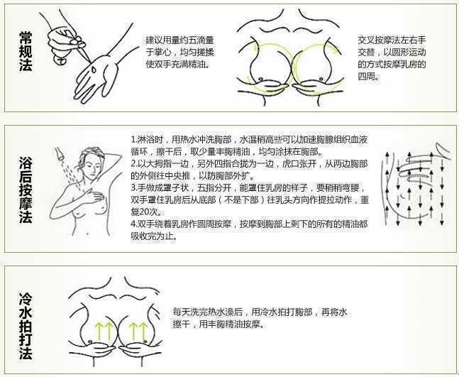 *配合护理手法按摩效果更好(如图)。《《点击购买仟草佰露丰胸精油