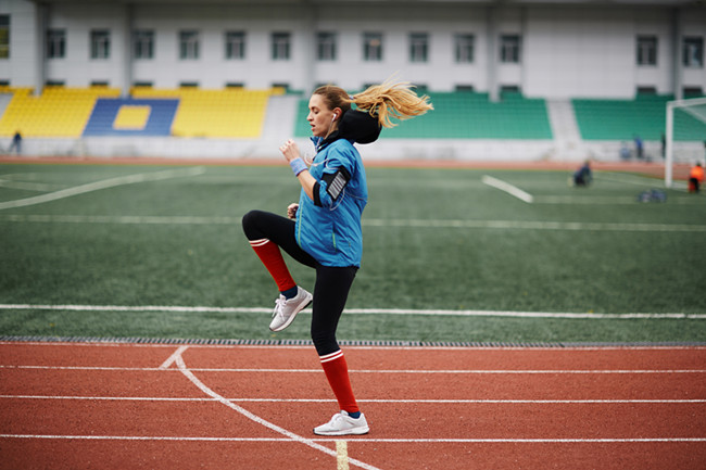 3、再下放回到原本的预备位置,来回进行10-20次。