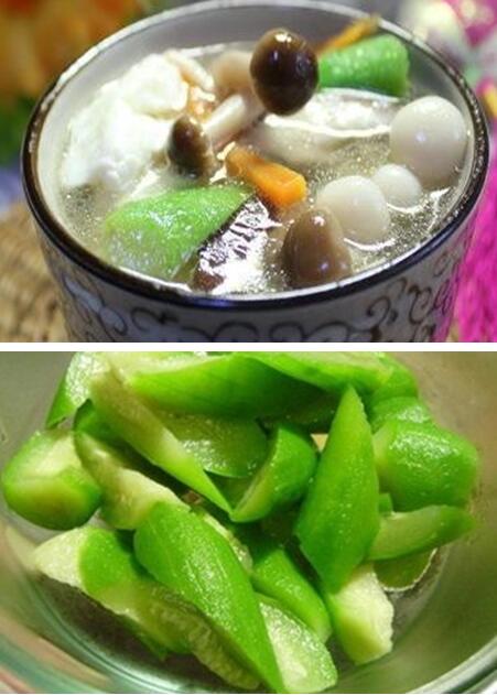 芙蓉菌菇丝瓜汤美味好喝,芙蓉菌菇的食用菌经常食用,可以有效保护乳房健康,丝瓜有活血、通经、解毒的功效,富含B族维生素,食用有助于激素的合成,是不错的丰胸食物。