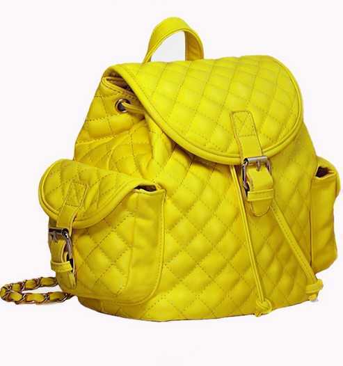 抢眼的黄色菱格双肩包,贴心的双口袋设计,让你背着舒服时尚,超大容量的时尚包包,最适合学生一族不过了。