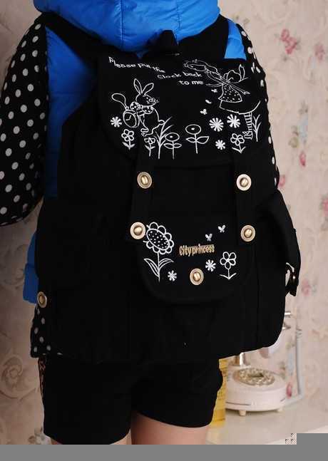 韩版春季帆布黑色双肩包,可爱的白色涂鸦设计,是学生一族的最爱款式,不仅时尚还很实用呢!