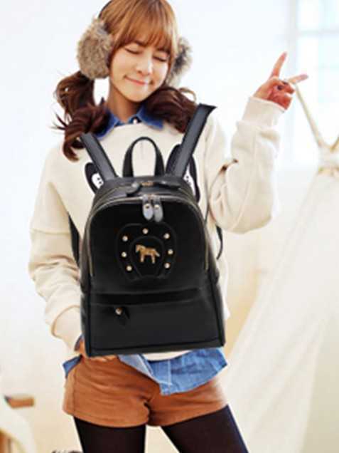 韩版黑色双肩包,精美独特的小马点缀着,更凸显出时尚感,随意搭配毛衣或卫衣都很好看,尽展出时尚英伦风范儿。