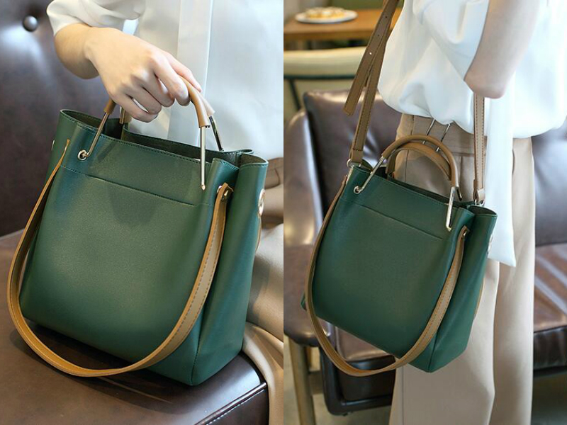 绿色显气质,搭配职业装显得时尚又大气。质地柔软的pu面料搭配任何服饰都不会过时,肩带可短肩带单肩背,也可长肩带斜挎,多变的设计让包包更潮流百搭,水桶型实用空间大,可满足日常上班出行所需物品的放置,真的很不错哦!