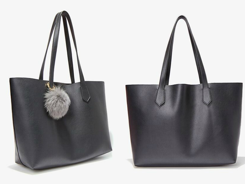 款式非常简洁大方的一款单肩包,经典的黑色耐看又百搭,精选优质pu革精致而成,材质柔软不易变形,车工精细牢固,容量大,日常工作的文件夹都可以放进去,而且还可以反过来使用,实用性更强,毛球装饰增添柔和气息。