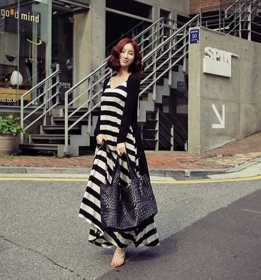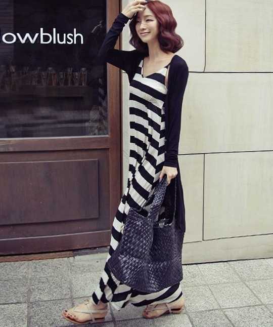 4:2013新款黑白条纹背心裙波西米亚长裙
