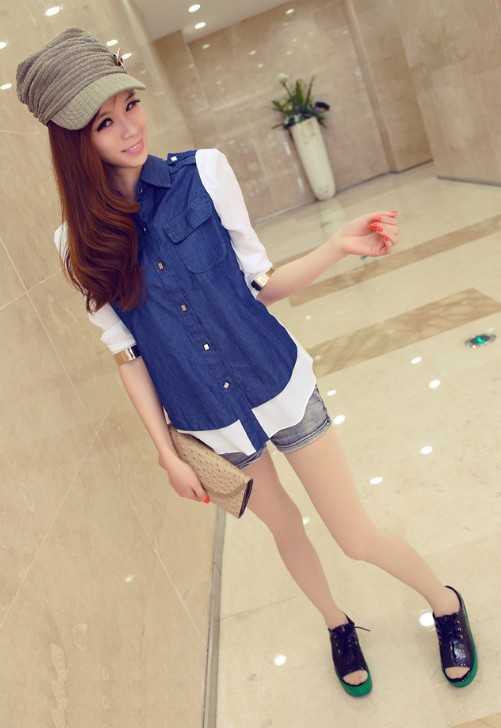 人气超高的一款牛仔衬衫,雪纺的完美拼接真的很仙的感觉!设计也很美很美,搭配牛仔短裤就已经非常养眼!