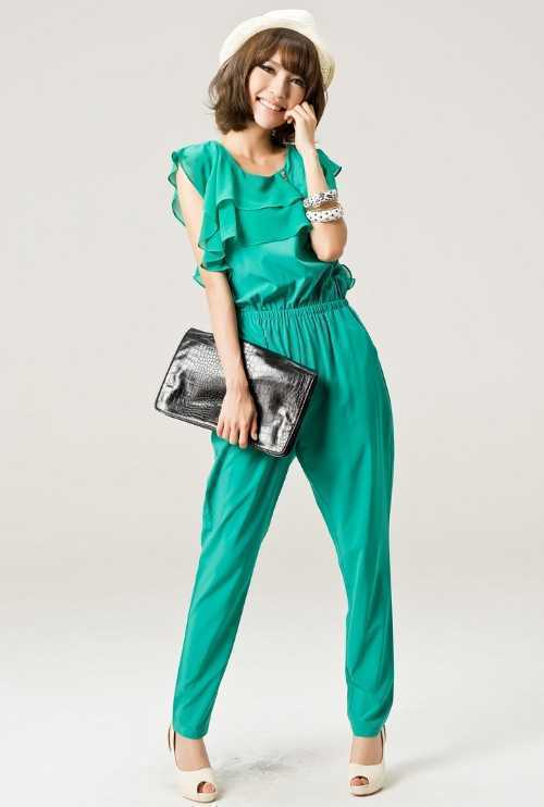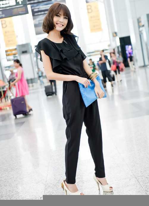 充满OL气质的一款连体裤,宽松的哈伦款式舒适度很高,加上胸前的荷叶边设计增加立体效果,让胸部更显丰满。