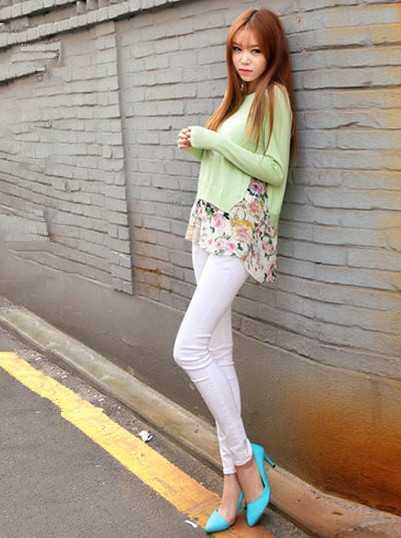 清新的浅绿色,独特个性的碎花下摆,穿出优雅个性范儿,经典的圆领设计,亲肤透气的针织面料,舒适时尚尽展。