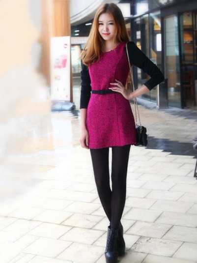 浪漫色调的玫红色,高品质的毛呢拼接连衣裙,穿出优雅淑女气质,腰间黑色细腰带的点缀,凸显出婀娜多姿好身材,随意拎着小包包,尽展迷人优雅女性魅力。