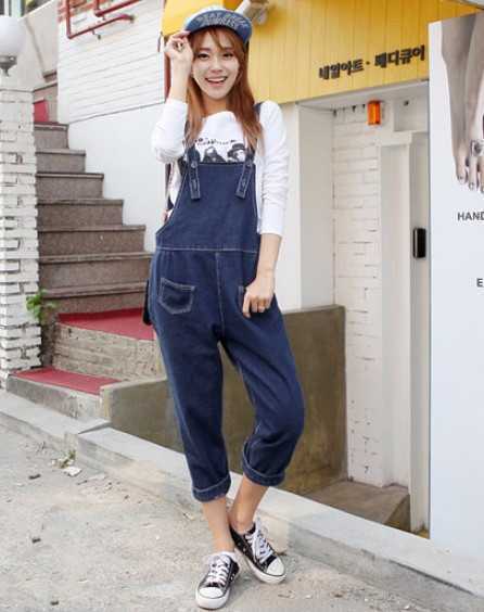 宽松款式的春季背带裤, 给人一种嘻哈俏皮感,精心剪裁的小口袋,随意内搭T-Shirt或针织衫,更凸显时尚感,是春季减龄必备的单品之一。