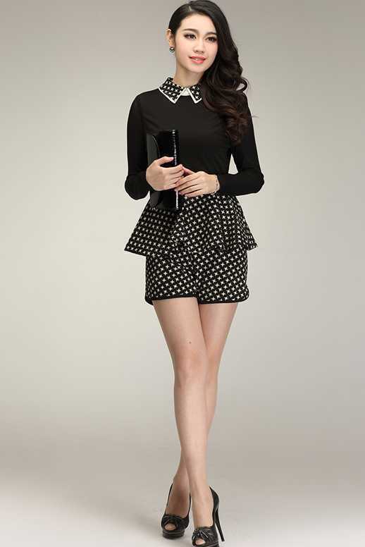 韩范十足的黑色春季套装,优雅又大气,轻松搭配高贵黑色高跟鞋,散发出甜美高贵气质,轻松穿出超强气场时尚装扮,最适合干练OL们了。